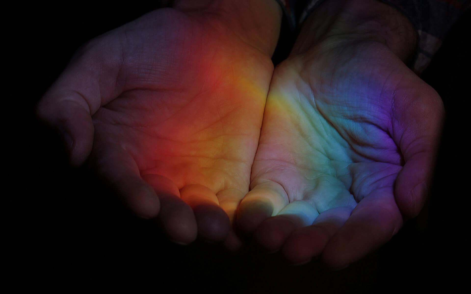 Hand with chakra rainbow colors